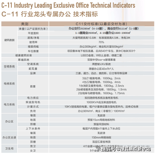 立面形式与C-12总部大厦的立面璀璨呼应;C-11建筑楼高约99.6米,共19层,