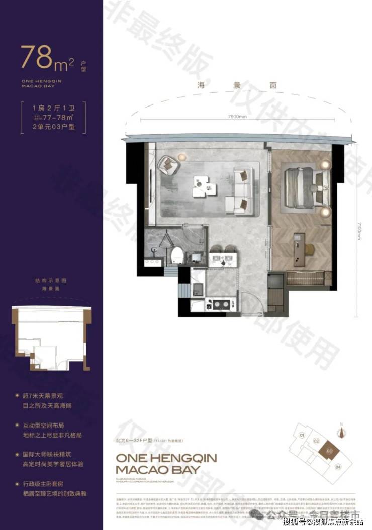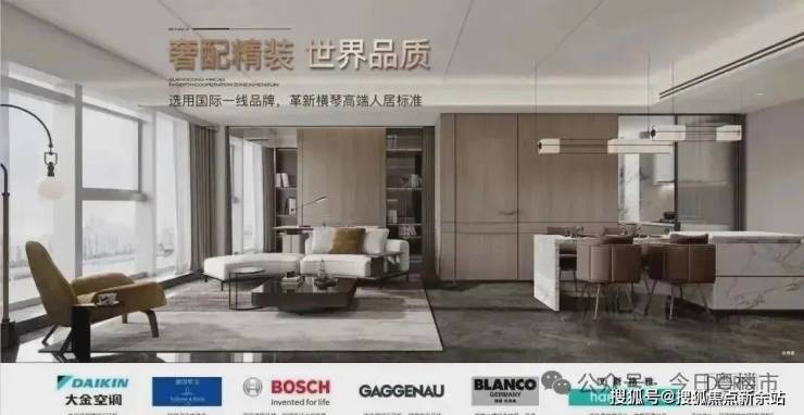 项目住宅产品定位“高端酒店式住宅“,满足高端商务型,旅居型豪宅客户群体,对标深圳湾 1 号、纽约 ONE57 公寓等世界级重磅住宅产品,产品面积从 78-135 ㎡,交付标准为奢配精装,选用国际一线品牌,如大金、博世、嘉格纳、美诺、当代、铂浪高、汉斯格雅等,革新横琴高端人居标准。