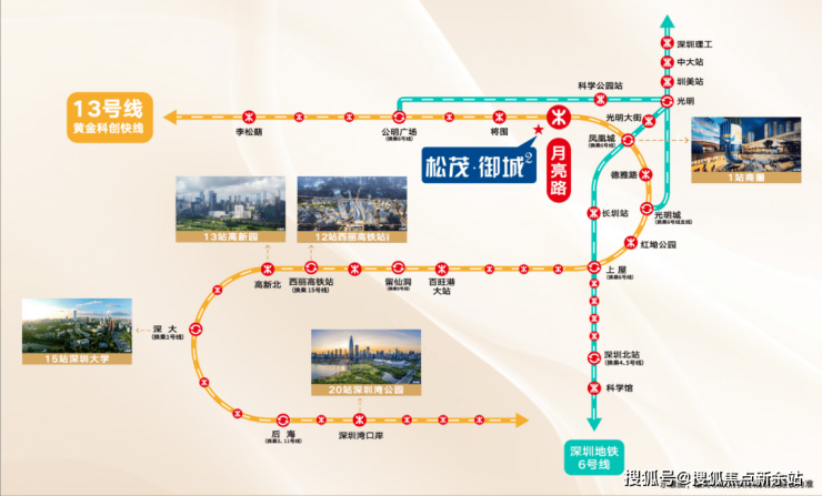近邻13号线(预计2025年底开通)月亮路站(在建)直线距离约600米,距将围站(在建)直线距离约800米,未来1站凤凰城,9站进南山,一线直达南山科技园、深圳湾 口岸。13号线正式进入列车调试阶段,向下一步通车试运营迈出了关键性一步。