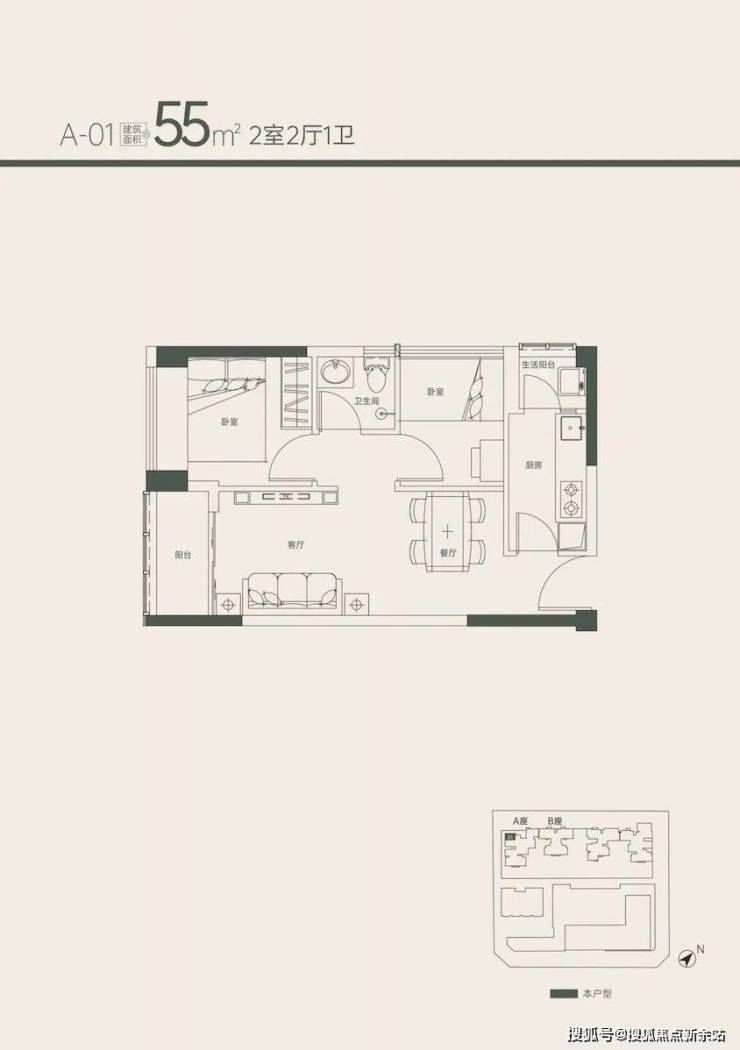 相较于55㎡户型这个两房的亮点在于厨房是真的太爽,还能设计推门整个空间看起来会比55㎡的两房大,东南向朝向也更优质。