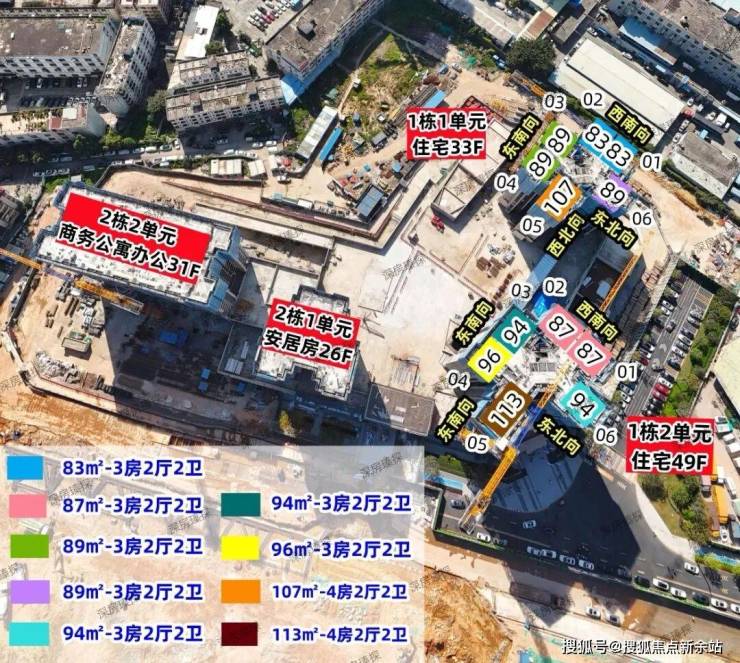 01地块是《盛境御府》,总占地面积约1.83万㎡,总建筑面积约13.4万㎡,计容建筑面积约10万㎡,容积率5.37,绿化率40%,共由3栋总高26-49层住宅+1栋商务公寓组成,其中1栋1单元商品房33层,1栋2单元商品房49层,2栋1单元安居型商品房26层,2栋2单元商务公寓办公31层。