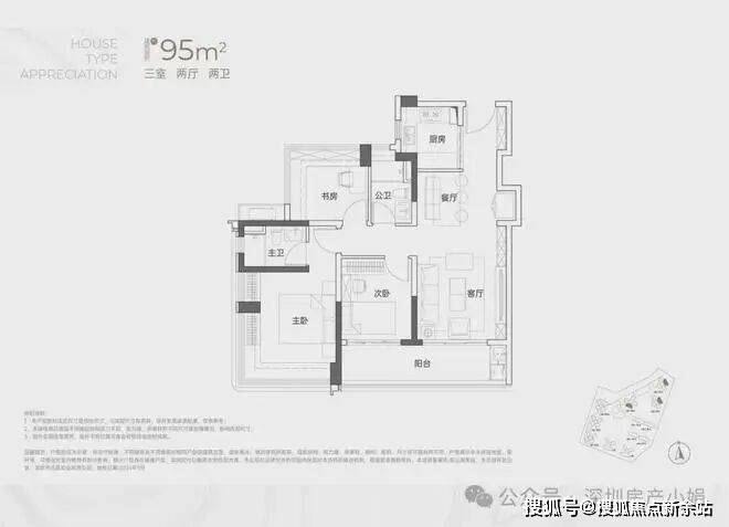 主力户型解析:95-138㎡全能3-4房,适配全家庭需求建面约95㎡ 三房两卫• 格局:传统竖厅设计,南北通透,空间利用率拉满,得房率约95%-97%。• 亮点:3.5米客厅开间,搭配6.3米宽大阳台(连通客厅与次卧),晾晒、观景两不误;主卧与次卧配备270°全景飘窗,东北向享大南山景,西南向望小区花园。