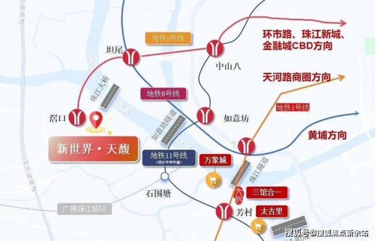 项目位于滘口板块,临近白鹅潭CBD,荔湾区目前在建的华润万象城商业,滨水街区太古里、太古汇,三馆合一都在附近,旁边就是5号线的首发站,去往珠江新城、金融城等地都无需换乘,相对来说这一片居住设施还是比较成熟的,还是豪华交标!