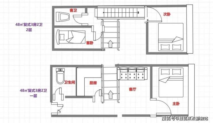 48㎡㎡3房2卫