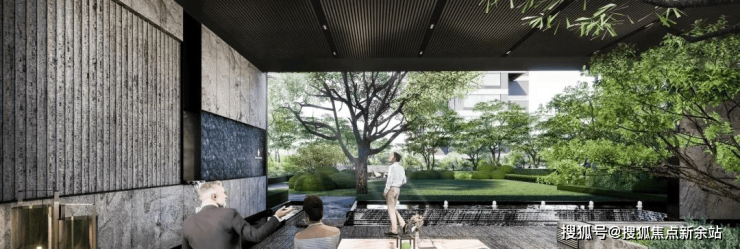 横向跨度再加以弧形边框,在色彩与材质方面运用古铜色铝板承接传统美学与极简现代化的色彩,质感十足,清雅的同时又不失尊贵感。