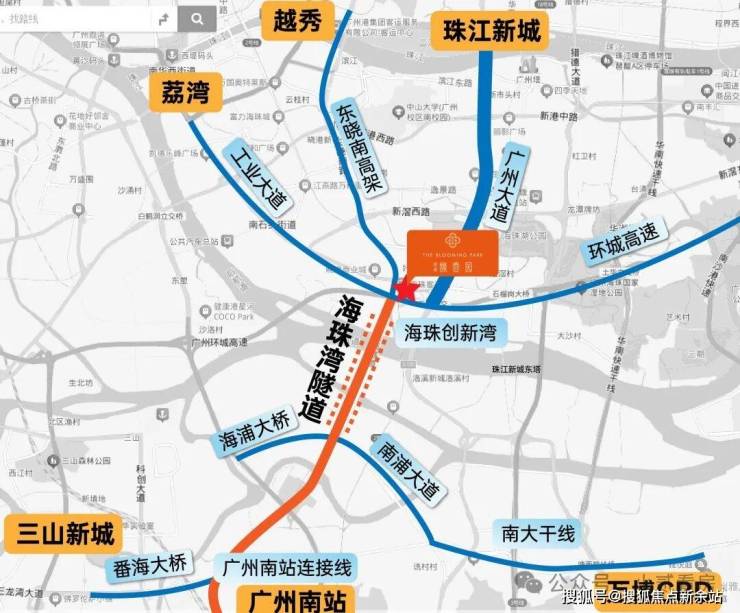 自驾的话,项目位于广州新中轴南延线上,小区家门口就是南洲路和东晓南路,周边还有广州大道南和环城高速,去各地都很方便。