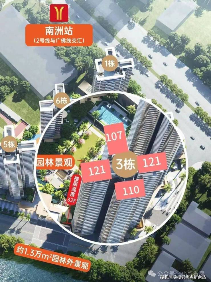 紧邻2号线和广佛线换乘站南洲站,直线距离仅一百米,可以说出门就是地铁站。