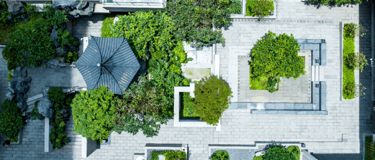 参考岭南元素,将社区园林做成了“六廊八景三居游”的布局,在社区内植入了亭台楼阁、假山花园、绿竹小径等游园景观。