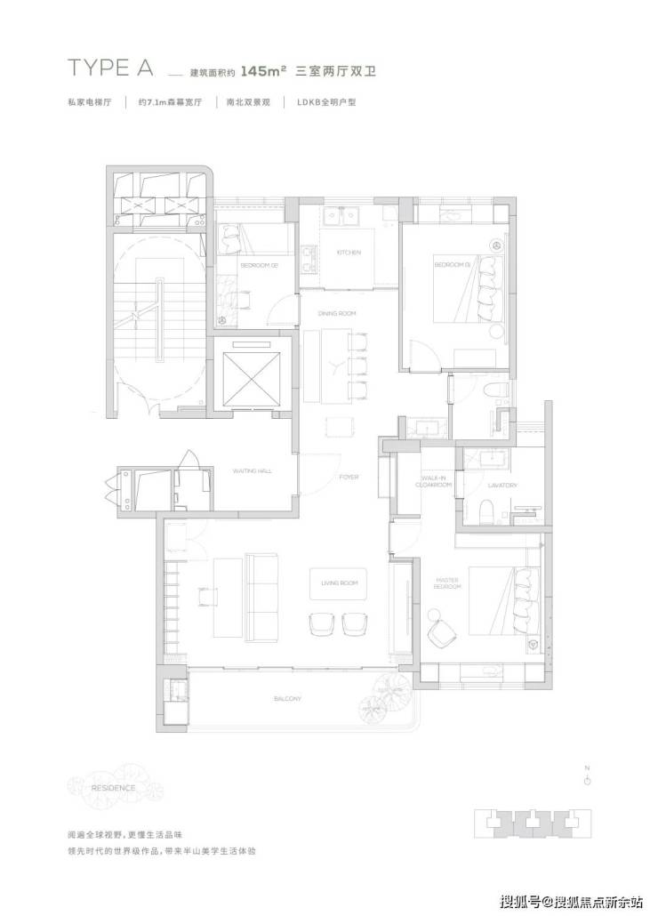 观景双阳台-高定双套间-私家电梯厅-双洄游动线