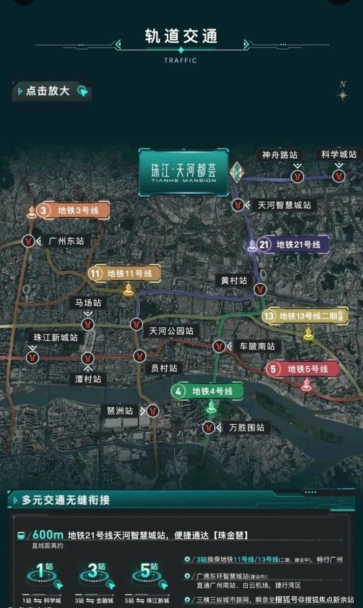 项目处于天河智慧城核心,临近地铁21号线天河智慧城站(约600米),可通过快线快速通达金融城、珠江新城等核心区域,换乘地铁11号线/13号线(二期在建),交通便利。