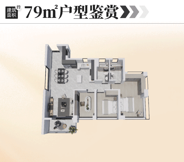 建面约79㎡户型,更是突破了小户型南向采光的想象。