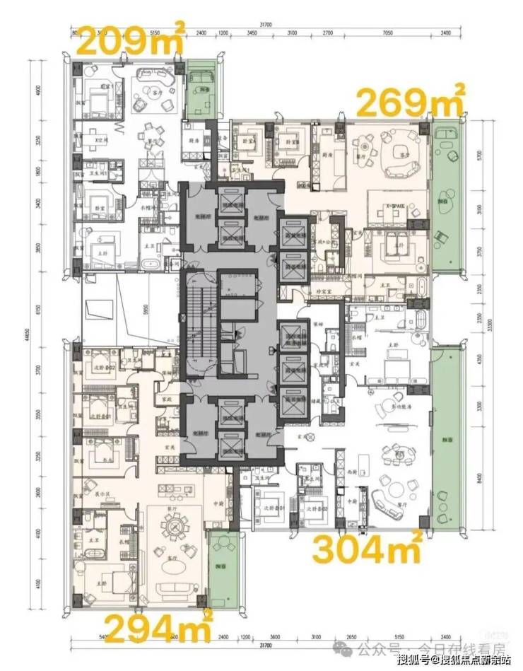 面积户型:200㎡-270㎡-300㎡-400㎡-500㎡-700㎡-1050㎡