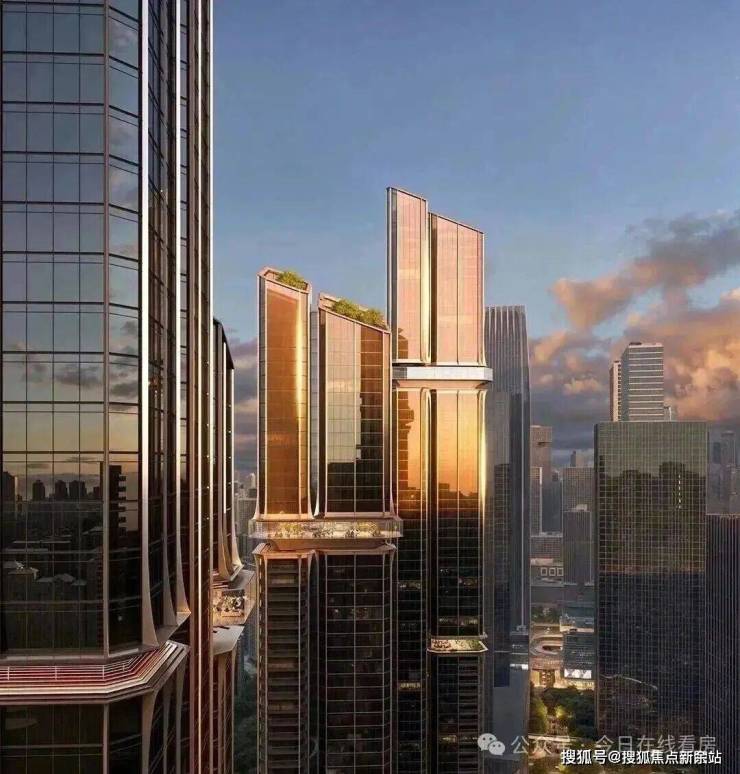 塔楼规划:由5座150-250米塔楼组成(1座250米公寓,4座住宅分别为150米、200米、200米、240米),采用错落布局和平面退台设计,优化深圳湾景观视野,层高3.6米,约40-70层(不含底商)。外立面采用全玻璃幕墙,设计灵感来自植物细胞的有机形态,原方案锐利阳刚,新方案柔软温润,类似天鹅湖花园和红树西岸,强调自然与居住融合,绿植丰富。
