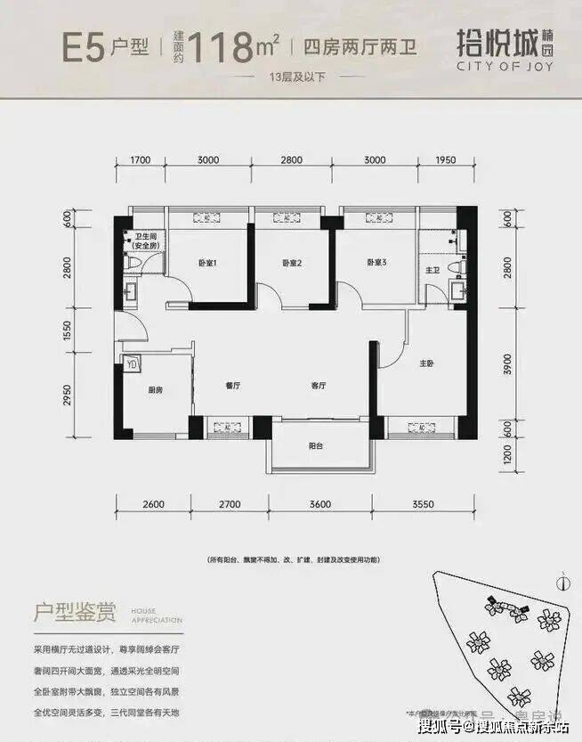 118㎡户型是五种四房户型里唯一的横厅,通透性肯定是没竖厅的好,但横厅的餐客厅空间感更强,实用性会更高一些,整体没啥大问题,主要看个人喜好,就市场受众来讲,竖厅的受众会更广泛一些。