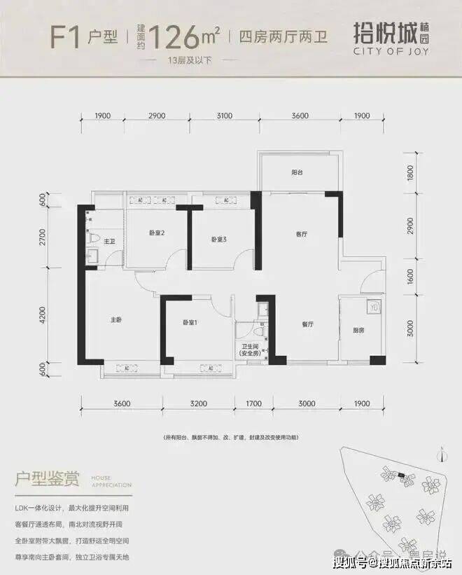 其中115㎡与126㎡外形结构与内部功能间布局基本一致,126㎡户型可看作是115㎡户型的放大版,都是竖厅、动静分区的,居住舒适性、实用性、通透性、静溢性各方面都比较好。