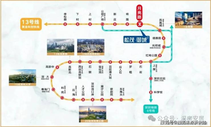 目前距离在建的13号地铁线“月亮路站”约400米,3站到光明城站,5站到石岩上屋站,计划在2025年通车运营。