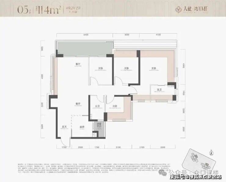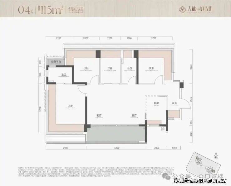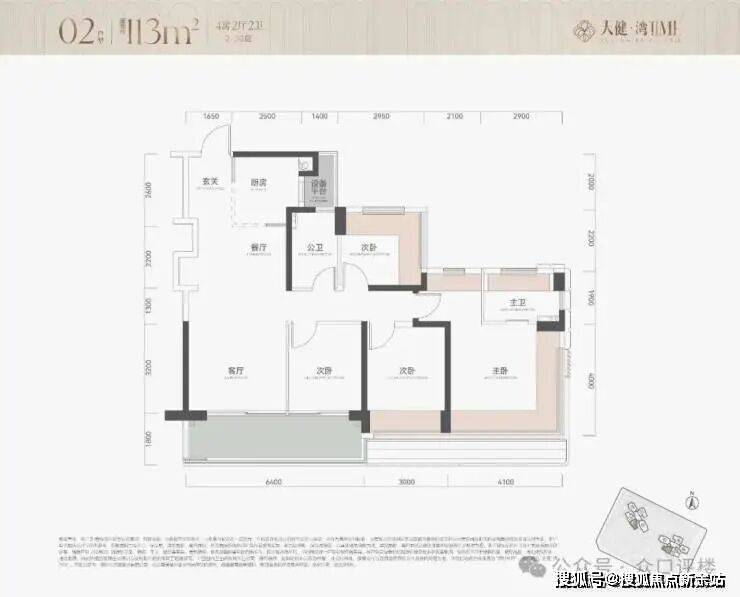 户型产品为113㎡ 4房和139㎡ 5房 约290套,2栋100米内31层住宅,2梯4户,其中主力为113㎡ 4房,具体户新图暂未公布。