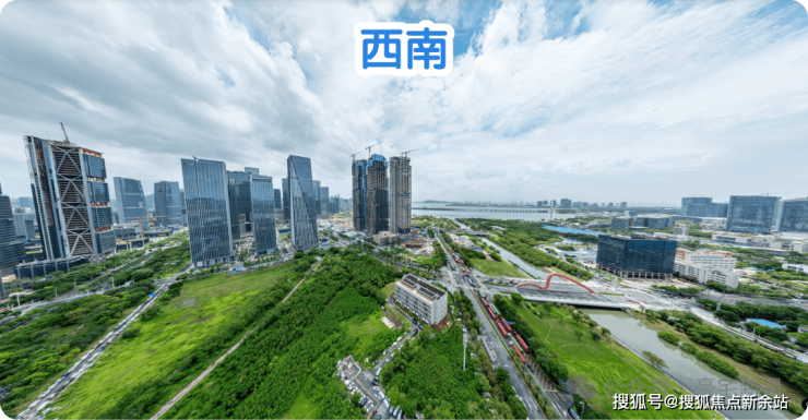 东北:楼下近距是公园绿地和双界河东段景观,远处看新安老城方向,整体远景城市景观为主。