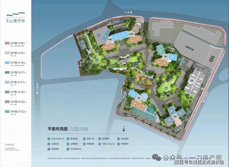 二期即准备入市的山海丹华府,共有983套住宅。由5栋住宅+1栋幼儿园组成,住宅高度29-32F,整体的容积率3.37,绿化率40%,停车位990个。