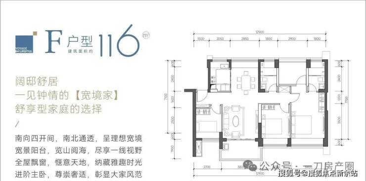 116㎡的4房2厅2卫,F户型,设计的是竖厅南北通透格局,餐客厅一体化设计,客厅3.8米开间,四开间朝南,4个卧室分别做到了主卧18.02㎡/次卧12.3㎡/次卧8.7㎡/次卧8.37㎡(包含墙体飘窗),都不用搭配飘窗做床,L型厨房,卫生间干湿分离,阳台主朝西南或东南向。