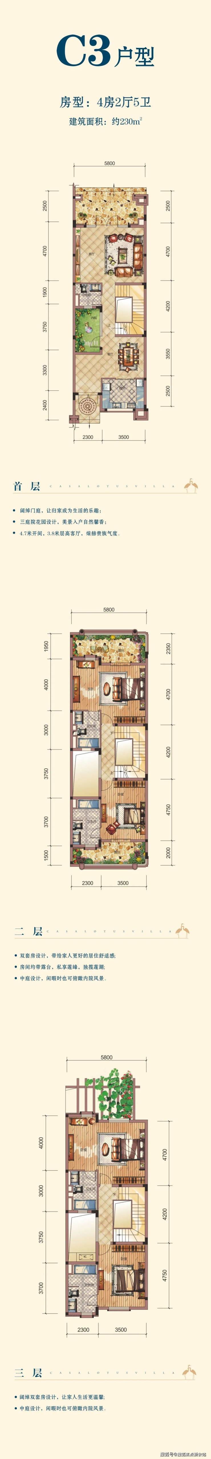 250-330㎡峰境双拼,傲立项目海拔制高点,莲峰山水尽收眼底,以君临天下的姿态。316㎡横拼7.5米挑高、6.2米超大开间客厅,全赠送178㎡地下室,双层花园设计,赠送面积超过120㎡,满足一家人的天伦之乐,地下室花园的赠送率接近100%,是现代院墅无法比拟的存在。