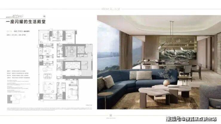 由4栋51至63层3.6-3.9米层高的纯居住奢装交付地标、两栋4.5米层高的小高层,35栋独栋,全景幕墙、宽景阳台。
