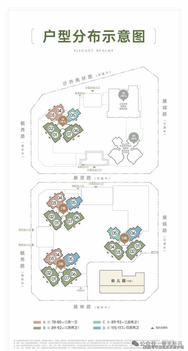 招商会展湾雍境名邸位于宝安沙井大前海会展湾片区的招商会展湾雍境名邸,本次是招商会展湾雍境二期,首推1栋3单元的195套房源,面积段有80㎡3房1卫,91㎡3房2卫,92㎡3房2卫3种户型,是3梯7户的普通高层,预计2027年9月精装交楼。