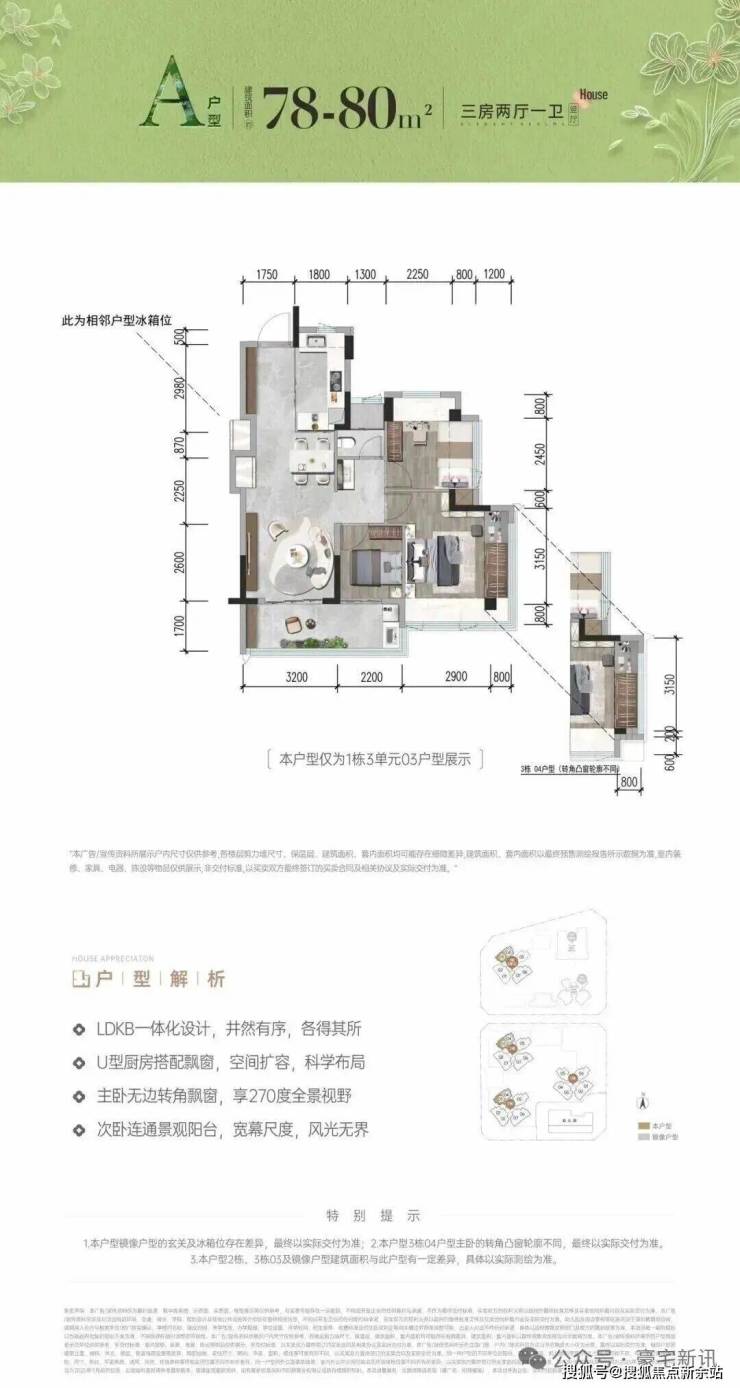 首次推首北地块1栋3单元,约80-92㎡ 3房,共195套,新规使用率高达96%-105%!