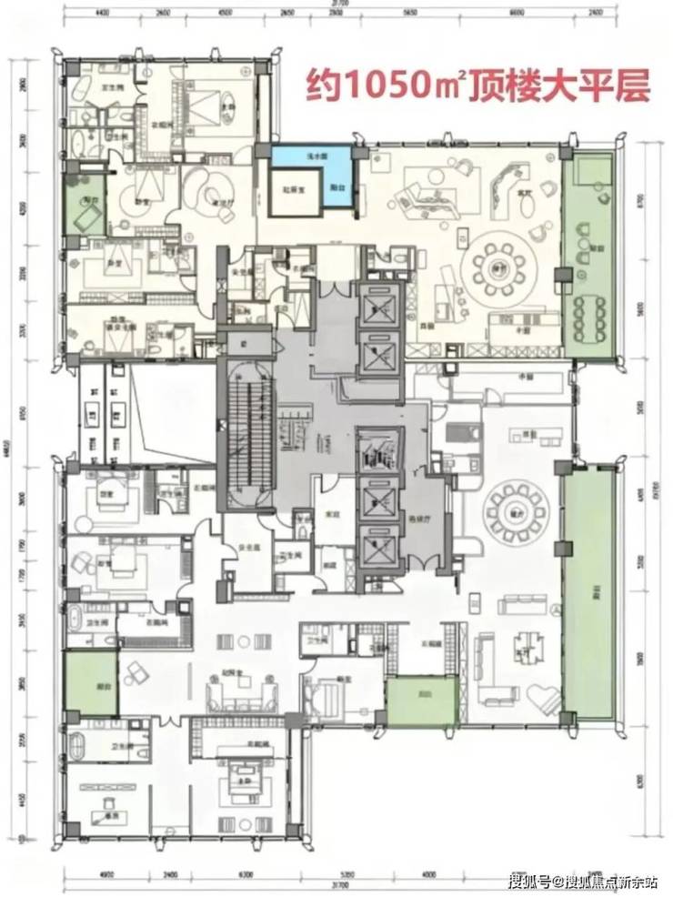 户型面积布局101050平大平层顶楼大平层,空间奢阔程度堪称 “空中别墅”,是顶级居住体验的代表。整体布局大气磅礴,功能分区精细且丰富:包含多间套房式卧室,每间都配备独立卫浴与专属空间,充分保障居住私密性与舒适感;公共区域十分开阔,超大客厅与餐厅相连,能轻松承载家庭聚会、高端社交宴请等多种场景;同时设置了多个特色功能区,宽敞的观景阳台可俯瞰绝佳景观,为生活增添惬意;家政、储物等辅助空间也很充足,让大宅生活既显奢华尊崇,又能井然有序,全方位满足顶级居住与社交的多重需求。