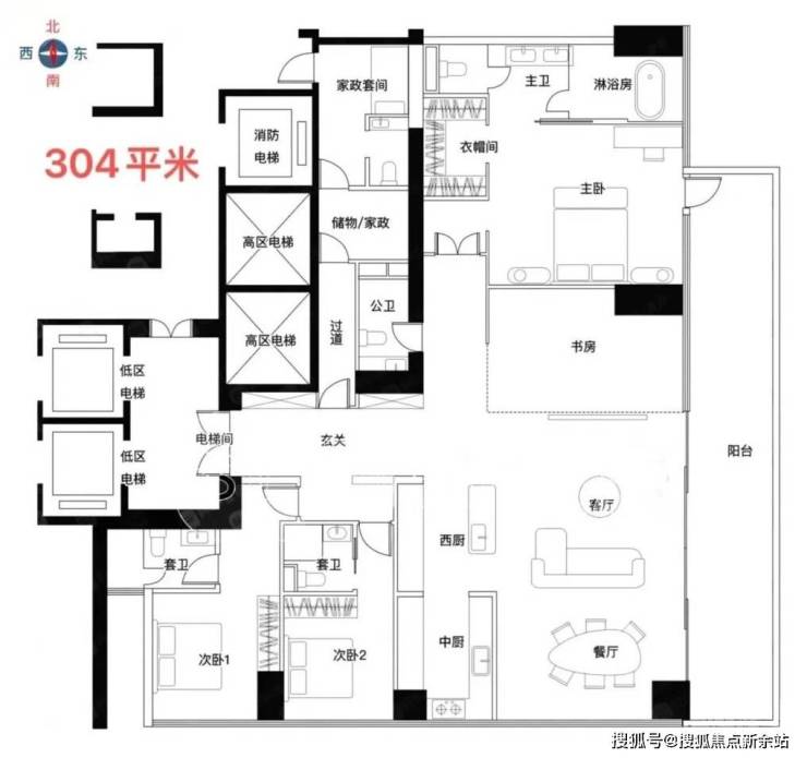 户型面积布局4304平四房两厅四卫四房四卫设计,空间尺度阔绰。配备多功能房,可按需打造成书房、娱乐室等。主卧套房设计,带独立衣帽间与卫浴,尽显尊贵。双阳台布局,采光与观景效果好,同时设有保姆间、家政间等,保障了主人生活的私密性与便利性。