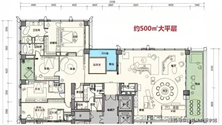 户型面积布局8500平大平层空间极为开阔,功能分区丰富且合理。有多个阳台,延展了室内空间与观景视野。室内布局涵盖多个卧室、中西厨等区域,无论是家庭起居还是社交待客,都能有舒适且独立的空间,尽显大平层的奢阔与大气。