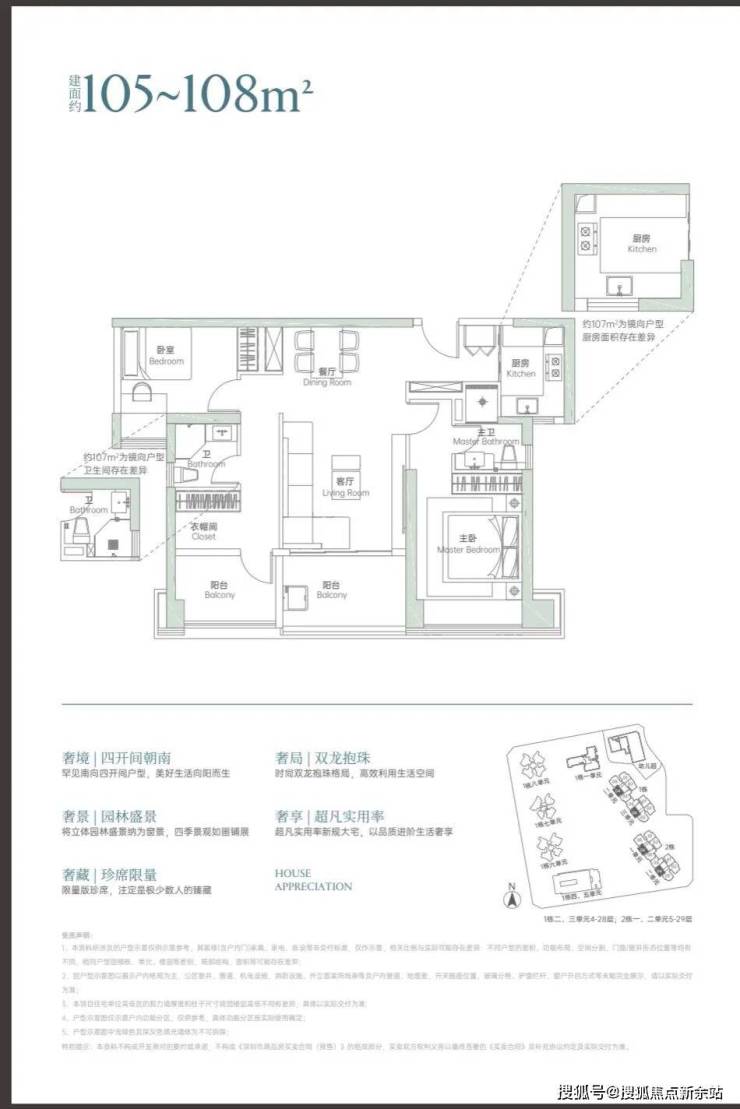 项目首推2-2栋约156套3-6房户型,楼栋分高低区不同设计,低区3梯5户,高区3梯3户。户型采用新规设计,124㎡就能做到四房三卫双套间。