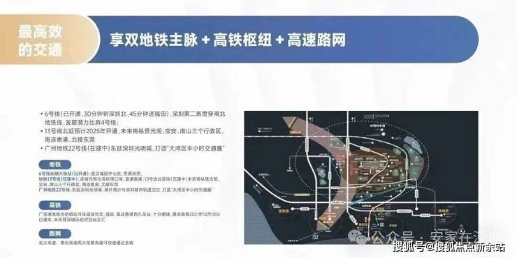 项目靠近地铁6号线【光明大街】站(已开通)直达福田,地铁13号线(在建)连接光明与深圳湾口岸。龙大高速、南光高速两大免费高速可快速通达全城。广深港高铁光明城站往返深圳北、福田便捷,赣深高铁及未来的莞深城际也在此交汇。