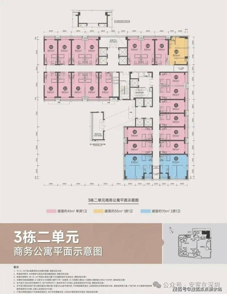 (41㎡单间760套、55㎡一房38套、70㎡两房76套)