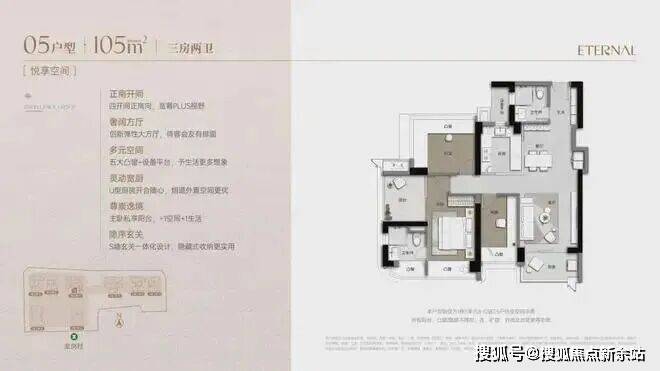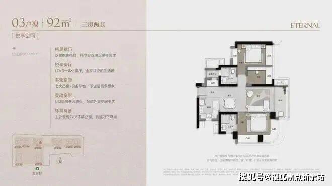 92㎡三房:竖厅格局,动静分区明确,北向景观,适合首改或年轻家庭。