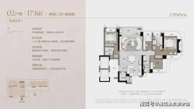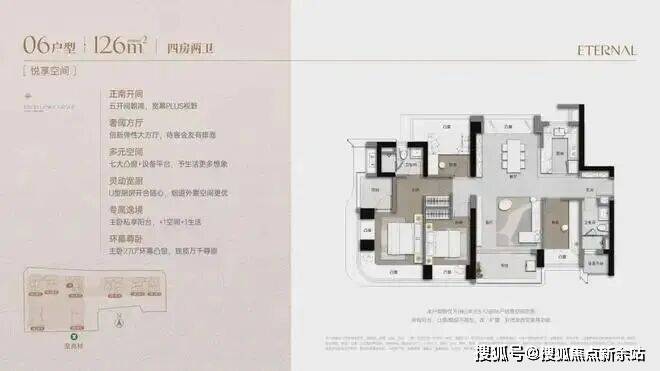 126-173㎡四房(占比83%):南北通透设计,主卧带独立衣帽间/卫浴(套房设计),部分户型享270°环幕视野,满足多代同堂或二孩家庭需求。