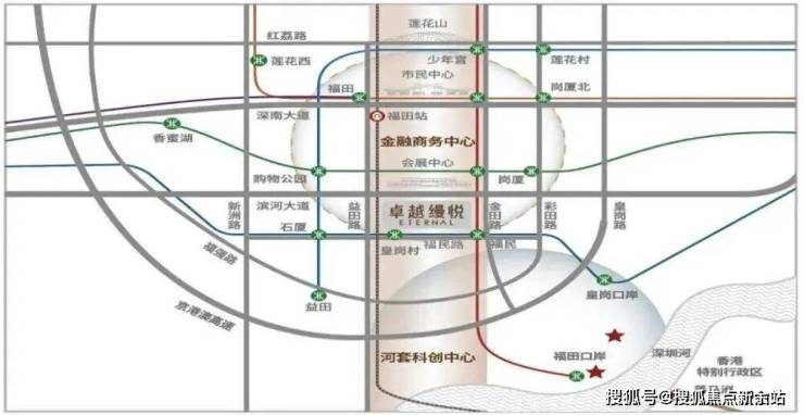 项目位于深圳中轴之上,北接莲花山公园和城市CBD,南至深圳河对望香港,是深圳城市地标轴线的重要一环。深港中轴,北承深圳,南接香港,福田+中环双CBD,河套+北都双科创增长极,擎领湾区金融科创未来。
