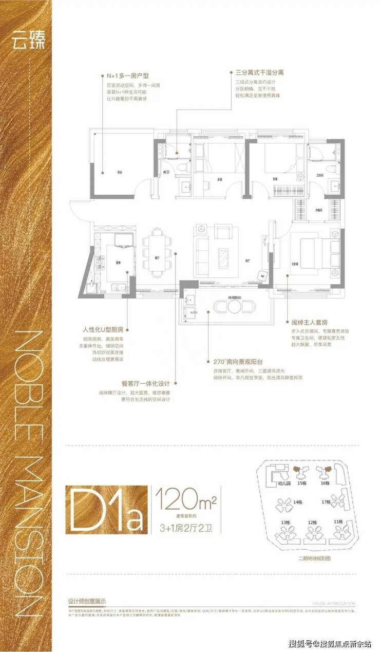 户型D-1,建面约120㎡,3+1房2厅2卫