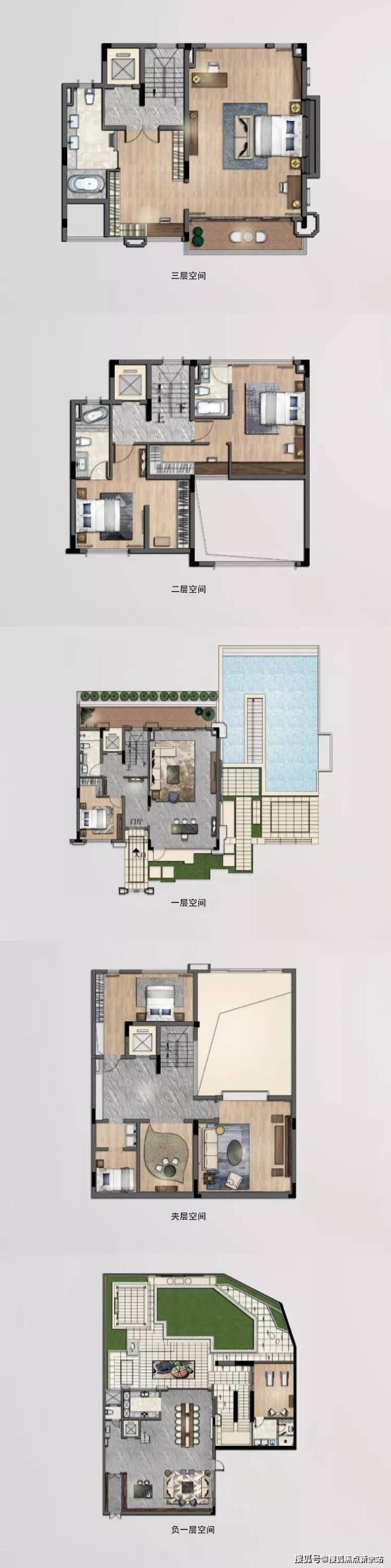 五矿万樾台共规划58套别墅,主要分为双拼、三联排、四联排、五联排、六联排别墅,面积为约165-215㎡。