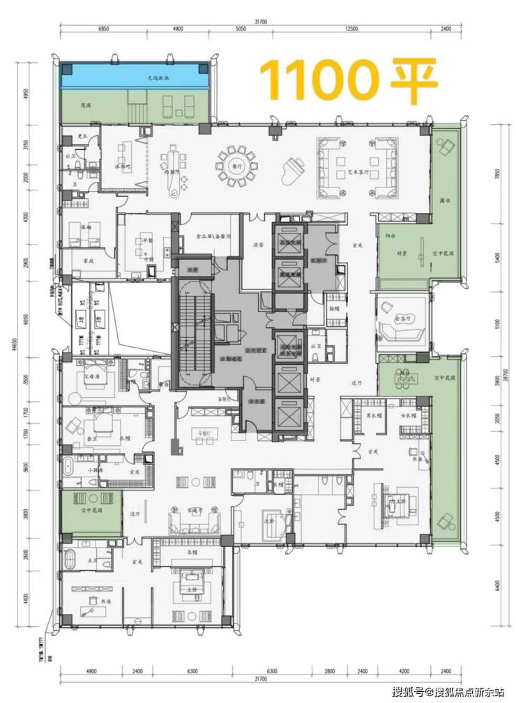 顶楼:约1050㎡整层大平层(仅3套)。