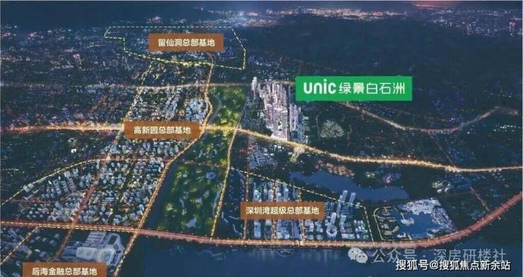 位于深圳南山区的核心地段华侨城片区位,集 科技创新、企业总部、绿色生态等多元价值的 城市中轴地段,串联了深圳湾超级总部基地、 高新园总部基地、留仙洞总部基地、后海金融 CBD四大总部基地。其中腾讯、小米、阿里、 百度、大疆等行业领军企业总部汇聚于此,吸 纳高精尖人才超75万人,是深圳的价值之核、 未来人脉价值高地。