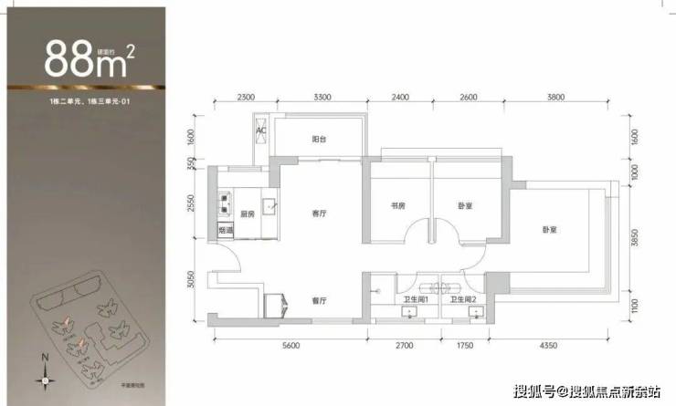 88㎡的3房2厅2卫,设计的是竖厅南北通透格局,客厅3.3米开间,,四开间朝南,主卧270°无转角飘窗,3个卧室分别做到了主卧15.63㎡/次卧7.54㎡/次卧6.96㎡(包含墙体飘窗),得房率约90%(包含赠送),阳台主朝西北或东北向。