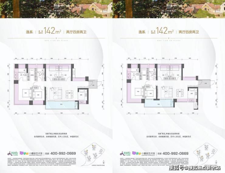 142㎡4房2厅2卫:横厅设计,7.3米超大开间,五开间朝南,主卧带大衣帽间,部分户型客厅出6.9-7.3米阳台,可看湖景,得房率最高104.2%,赠送最高34.38㎡