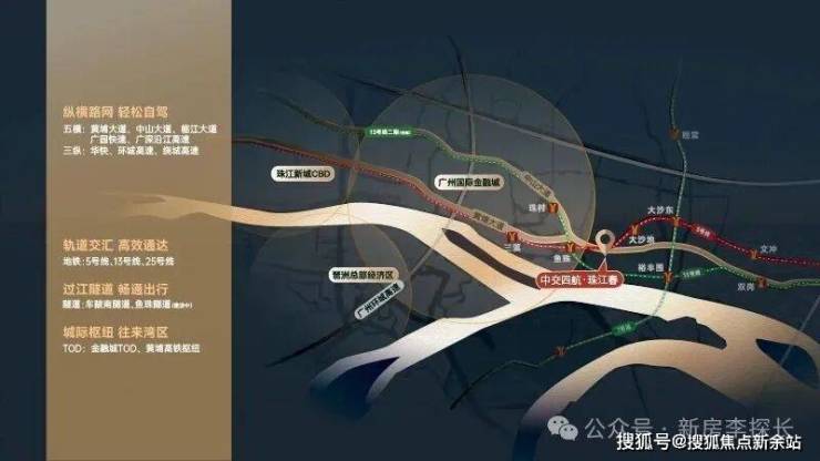 【潜力足】规划建设临江大道东延线、鱼珠隧道、沙鱼洲隧道、金融城广场综合枢纽中心、黄埔高铁站系列交通配套,构建黄金十字轴线
