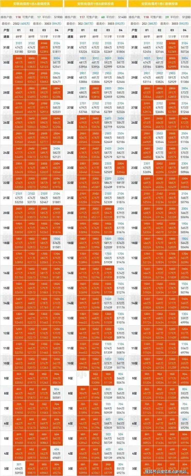 最新备案销控表:
