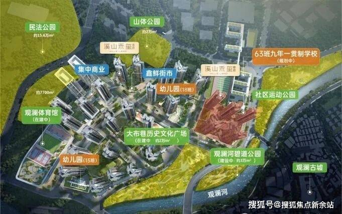 待整体完成后,将涵盖29栋住宅、2栋写字楼、约2万㎡商业配套、2所幼儿园、1所63班九年一贯制学校、文化活动中心、大布巷历史文化广场等。