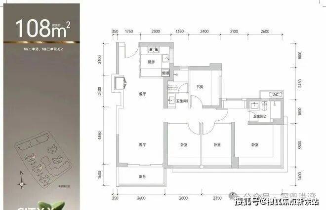 建筑面积约89㎡的3+1房2卫的01/07户型:全能型成长空间典范