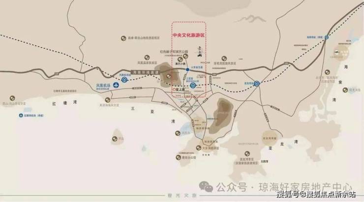 项目毗邻环岛高速、三亚高铁站、凤凰国际机场等重要交通枢纽,形成了“海陆空”立体交通网: