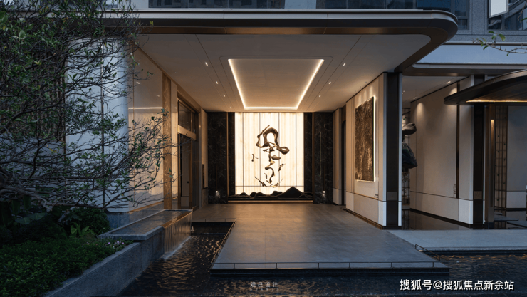 5栋的「云栖·西派艺术馆」 雕塑长廊与立体庭院串联,巧妙地陈设“风”字的金属雕塑、形似层峰叠峦的艺术壁画、融入白云山沉淀的绿宝石。