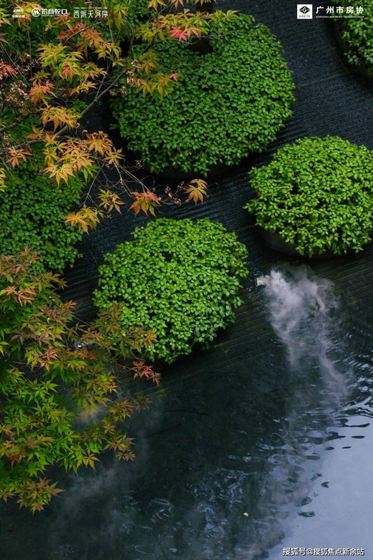 在园林上,摒弃市面上多用的围合式设计,其以垂直立体的景观的方式呈现。只要你变换位置,视角和景观面就会呈现不同的“丰盛”,整个园林常看常绝新,趣味性牵动了情绪的愉悦。